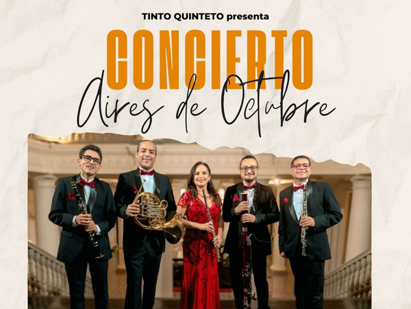 Celebrando la primavera, la agrupación TINTO QUINTETO ofrecerá el concierto “Aires de Octubre”, un encuentro musical con un repertorio que viaja desde la grandeza de Mozart y Beethoven hasta los ritmos vibrantes de Piazzolla, Paquito D’Rivera y clásicos del cine.