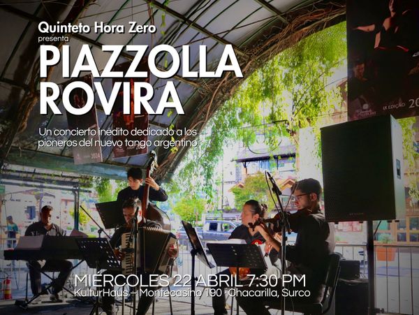 Para los amantes del nuevo tango argentino, la agrupación Hora Zero ha preparado un concierto que recoge lo mejor del repertorio de dos de sus más grandes exponentes: Astor Piazzolla y Eduardo Rovira.